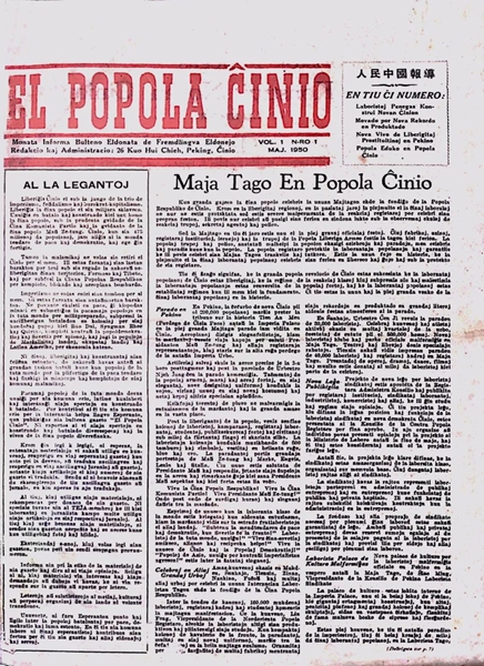 1949年8月,北京的一批世界语者在中国世界语运动的缔造者、著名出版家胡愈之先生领导下,着手创办世界语对外刊物、筹建全国性的世界语组织。10月,由老世界语者张企程起草的关于出版世界语对外刊物的报告被送到主管国际宣传的国际新闻局。