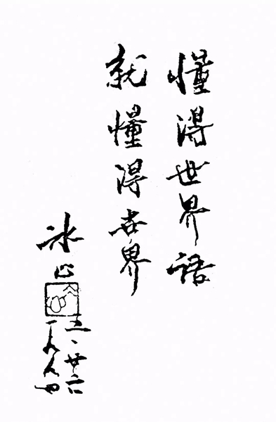 正如冰心为《中国报道》的题词:“懂得世界语,就懂得世界。”巴金在给《中国报道》创刊40周年的贺信中这样深情地写道:“我的心总是和你们的心跳动在一起的。你们的火也在我心里燃烧。”