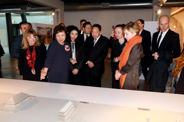 2019年3月22日,在习近平主席访问意大利期间,由中国报道社承办的“千亿像素看中国——城市与人”互动主题展在罗马隆重开幕。中国外文局副总编辑、中国报道社社长陈实(左二)向中宣部副部长蒋建国、中国外文局局长杜占元、意大利文化遗产活动与旅游部原副部长比安奇等嘉宾介绍展品。