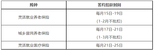 签约扣款范围为全市范围内参保且存在有效《社会保险费个人委托扣费协议》(以下简称“扣款协议”)的灵活就业养老保险、城乡居民养老保险、灵活就业医疗保险缴费人。