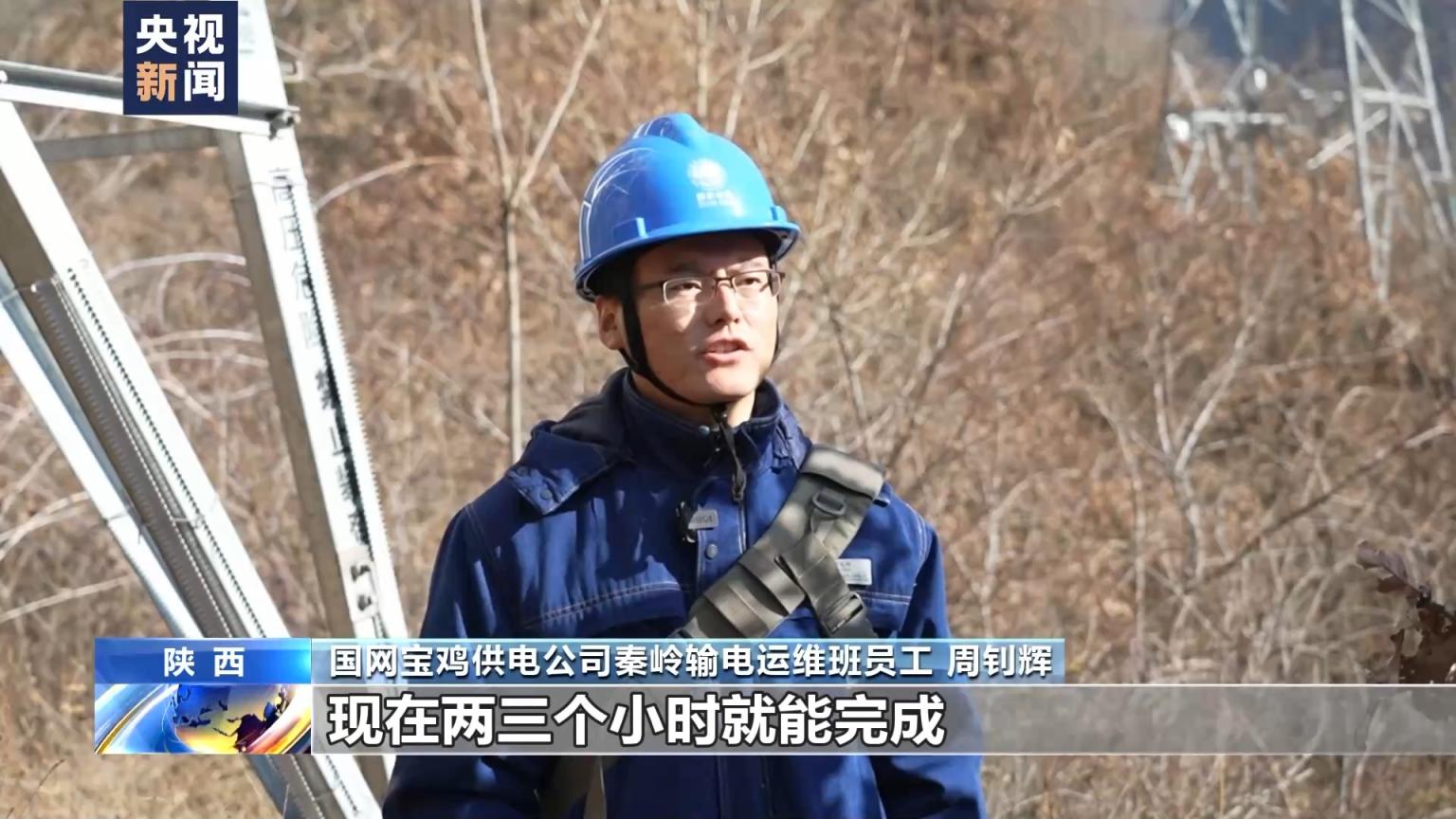 国网宝鸡供电公司秦岭输电运维班员工 周钊辉:之前一天工作量,现在两三个小时就能完成,大大提升了线路运维效率,也增强了供电可靠性。