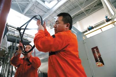 11月3日,华威联建供热厂锅炉房,工作人员在检查调试锅炉设备,保障即将到来的供暖季。新京报记者 薛珺 摄