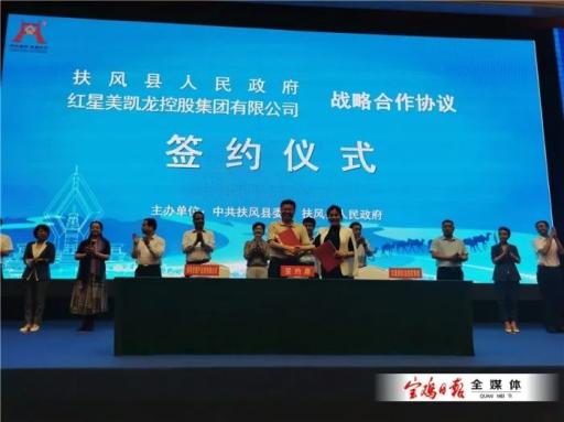 【宝鸡扶风县与红星美凯龙控股集团达成战略合作 签订总投资30亿元项目】8月20日,扶风县与红星美凯龙控股集团举行战略合作签约活动,现场签订总投资30亿元的红星晶海广场购物中心及扶风智能家居产业园项目。省商务厅厅长赵璟,市委书记惠进才,市长杨广亭,市人大常委会主任、党组书记马秉寅,市政协党组书记、主席何存贵参加签约活动。红星晶海广场购物中心项目占地40亩、建设面积5万平方米,集购物餐饮休闲娱乐为一体。扶风家居产业制造园项目致力于建设以家具建材生产、研发、制造、装配为主的红星云智慧园区。