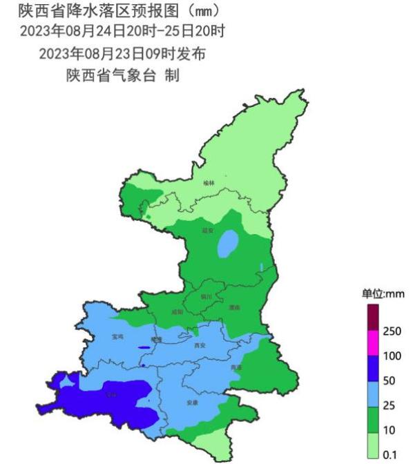 25日:陕北有小到中雨,南部局地有大雨,关中有中到大雨,南部局地有大到暴雨,陕南有中到大雨,汉中大部区县有暴雨。