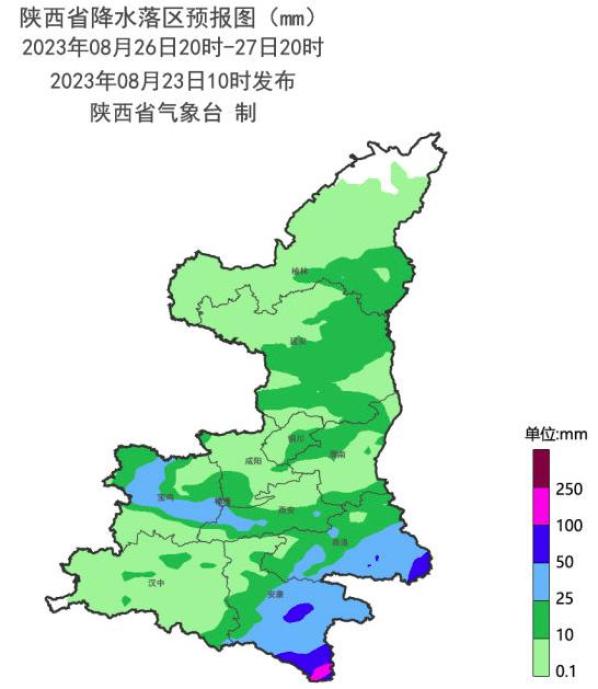26日:陕北中南部有中到大雨,局地有暴雨,关中有小到中雨,西部部分地区和南部局地有大雨,陕南有中到大雨,汉中东南部区县、安康大部分区县、商洛南部区县有暴雨或大暴雨。