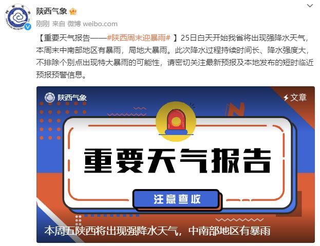 原标题:《暴雨!大暴雨!陕西发布重要天气报告》