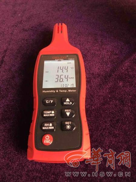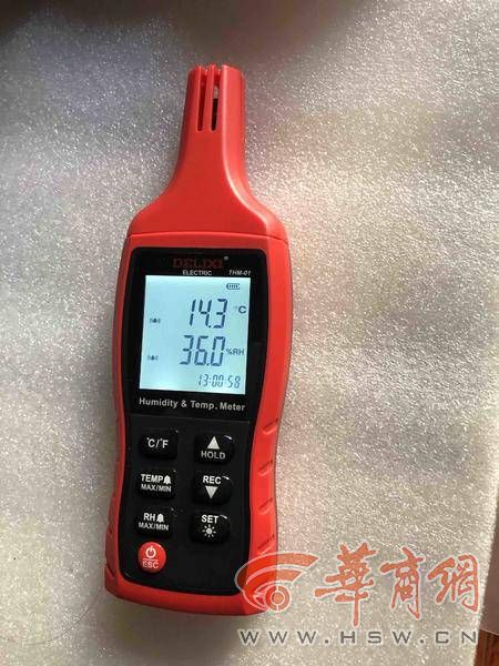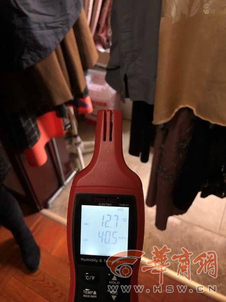 随后,华商报记者来到小区7号楼雷女士家,雷女士家也是暖气片,摸起来有一些温度。在其中一间卧室,记者测温结果为12.4度,雷女士自己的测温仪放在客厅,上面显示温度为14.2度。