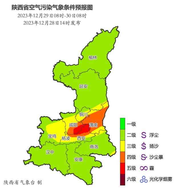 全省晴间多云。陕北、关中北部、商洛有4-5级偏北风,阵风可达6级以上,我省大部大气扩散条件改善。日平均气温全省下降4℃左右。