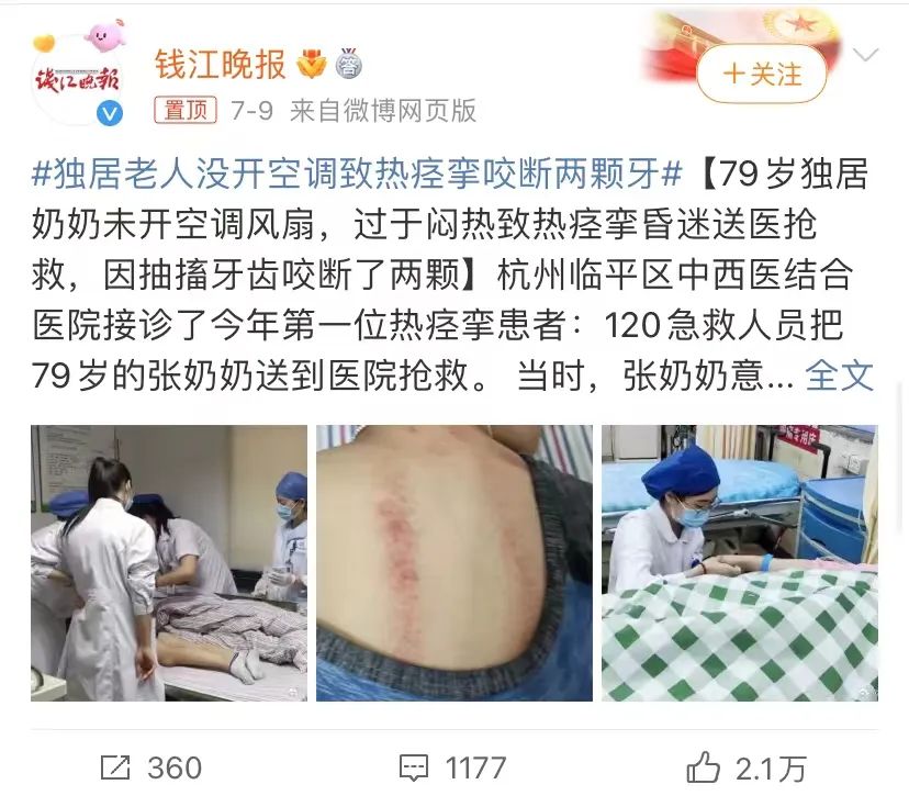 更重要的是,很多老年人在夏天还不愿意开空调,这让高温对他们的影响更大。最近杭州某医院就接诊了一位79岁的热痉挛患者张奶奶。