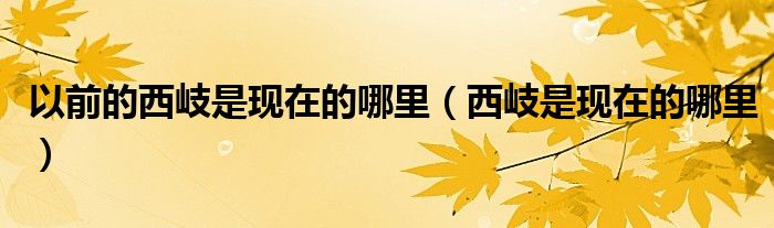 大家好,小乐来为大家解答以下的问题,以前的西岐是现在的哪里,西岐是现在的哪里很多人还不知道,现在让我们一起来看看吧!