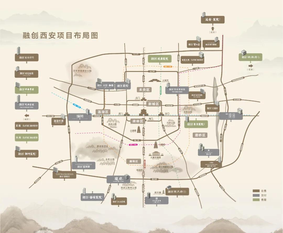 融创西安紧跟大西安时代城市圈的发展轨迹,用作品与城市对话,融入这座城市的生长脉络。五年间,在东二环、浐灞、沣东、高新、航天新城、城西、长安、咸阳、临潼等热门区域,布局31盘,传统文化接续道统,国际化浪潮澎湃新生,一园一景造就历史和鸣,一院一家书写城市新貌。