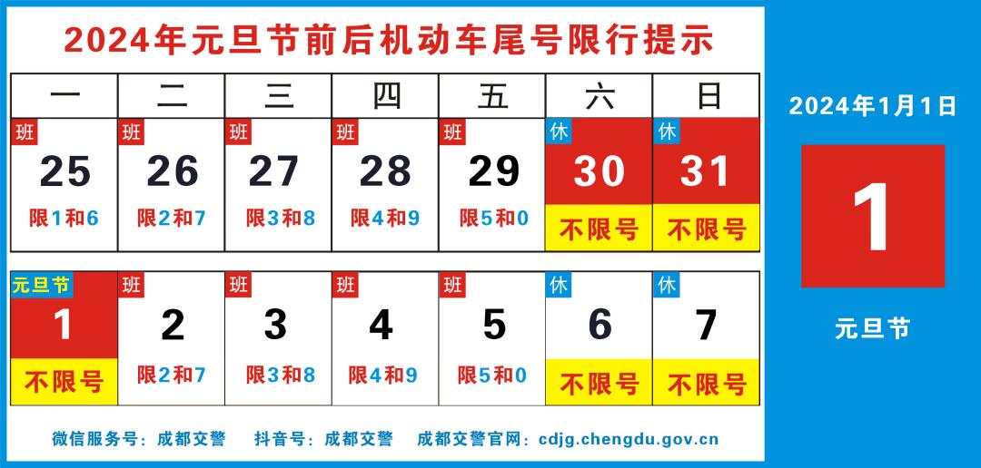 1月1日(元旦假期最后一天)为返程拥堵高峰,15:00-18:00绕城高速、成灌、成南、成温邛等高速公路交通压力较大。
