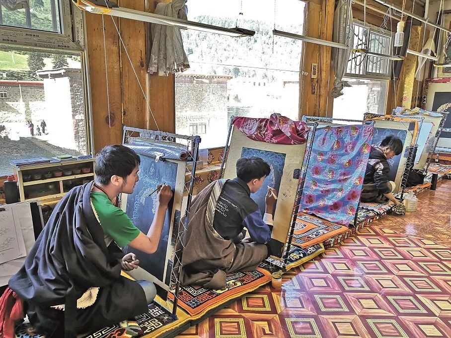“交通+文化”。在壤塘县中壤塘乡壤巴拉觉囊唐卡传习所,上百名藏族青年在这里学习觉囊唐卡、唐卡堆秀、雕塑和藏香制作等技艺。借助“藏羌彝文化产业走廊”政策红利,当地政府将觉囊唐卡、梵音古乐、南木达藏戏等打包成“觉囊文化”大品牌整体发展。