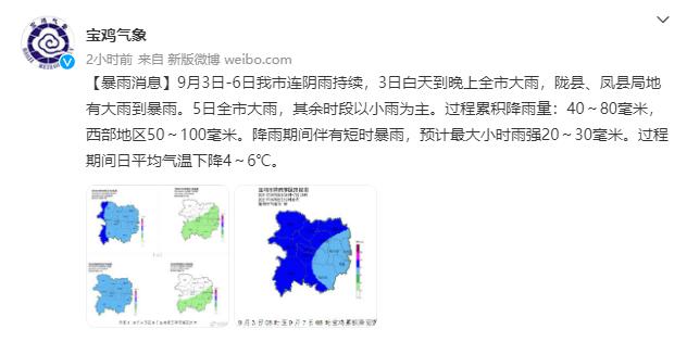 过程累积降雨量:40~80毫米,西部地区50~100毫米。降雨期间伴有短时暴雨,预计最大小时雨强20~30毫米。