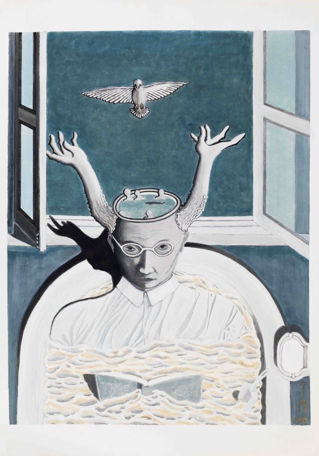 金老师不仅是超现实的画家,还是一个浪漫的画家。金老师的绘画叫叙事绘画,能够很多细节表现在一张画里,读者能从中读懂想要表达的含义。