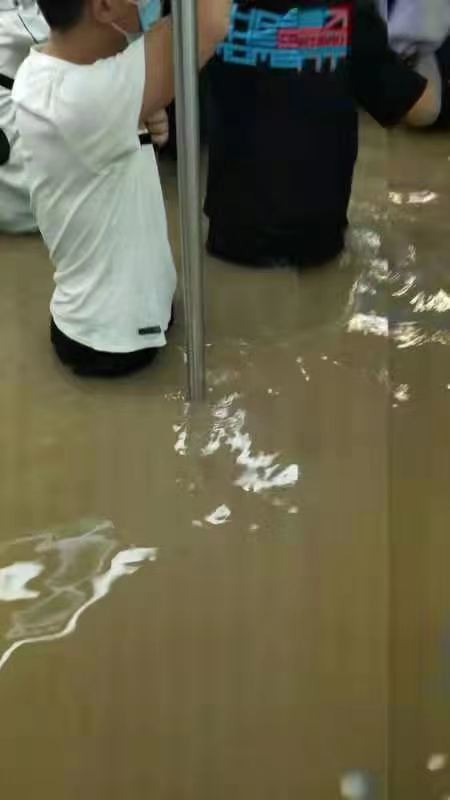 我从6点多就开始从家里出来,因为楼下水深都1米左右,只能趟着水出来,我一路狂走,偶尔跑,先跑到月季公园站,结果封闭了,大概有三四个站在那里等家人。