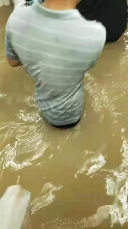 当7点28分,我走到嵩山路沙口路时候,妻子说车厢里的水已经快到脖子了。