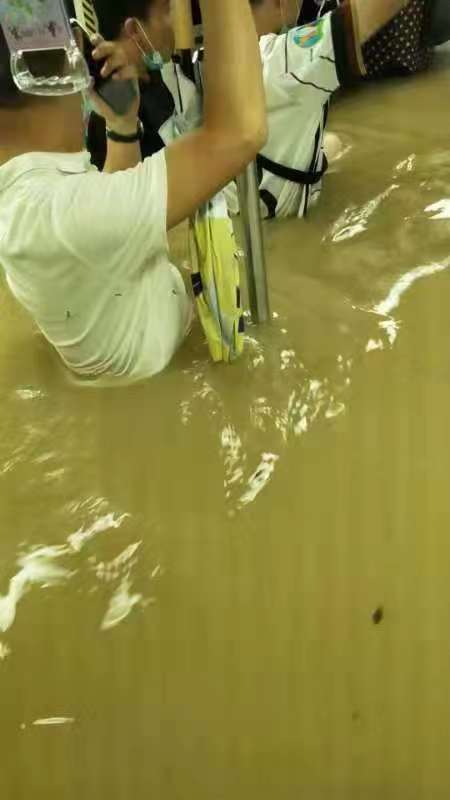 此时问题已经很严重,水漫到腰部的时候车厢还有电,但是所有人不知道前面什么情况,问前面的人也没有回应。