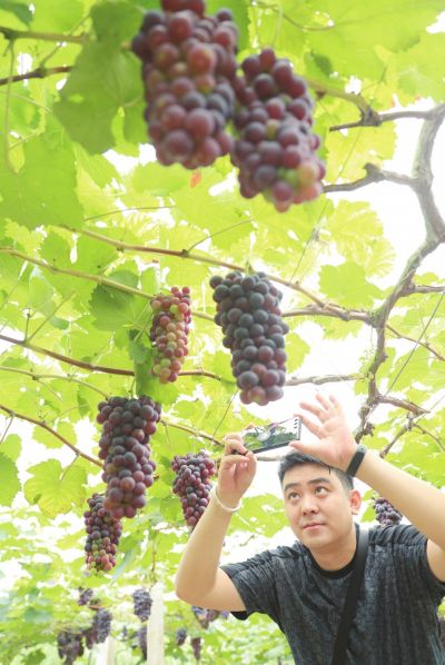 市民在拍摄葡萄,帮助果农发布销售信息。