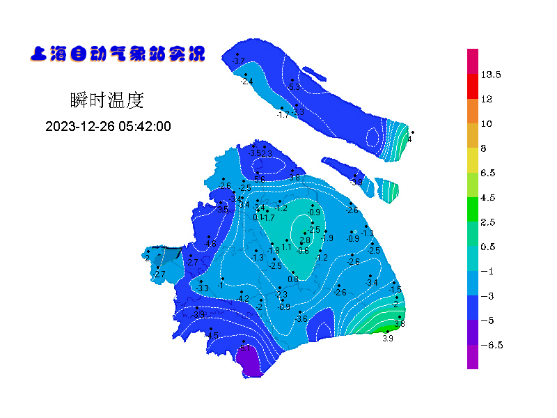今天早间出门还是挺冷的。市区气温在1℃上下,郊区仍旧在冰点以下,有冰冻或严重冰冻。其中崇明、金山等地气温低于零下5℃,城郊差异还是蛮明显的。白天晴转多云,东南风3~4级,相对湿度90%~35%,预计最高气温将突破两位数,在11℃。早晚还需做好保暖措施。另外,今天中午以前有轻度霾,易感人群注意防护!