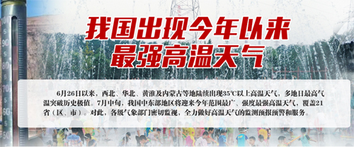 编者按 7月7日起,我国北方多地出现大范围高温天气过程。此次高温天气持续时间长、影响范围广并持续扩大,多地日最高气温突破历史记录极值。气象部门持续发布高温预警,通过多种渠道发布预报预警信息,向相关部门指挥调度提供精细化的决策服务,提示公众做好防暑降温措施,为公众生活、安全生产、城市运行、农业生产及生态建设等提供保障。