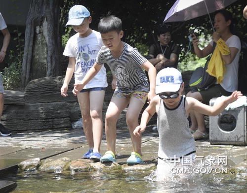 高温天气使济南趵突泉亲水区成了孩子们的乐园。孙彦摄影