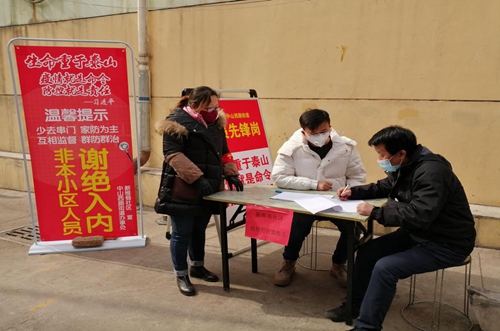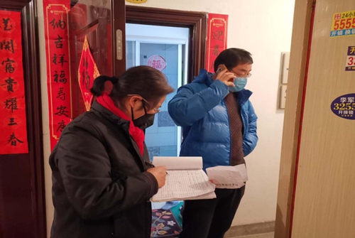 任书记带领辖区党员志愿者入户排查,认真登记,积极宣传疫情防控知识。