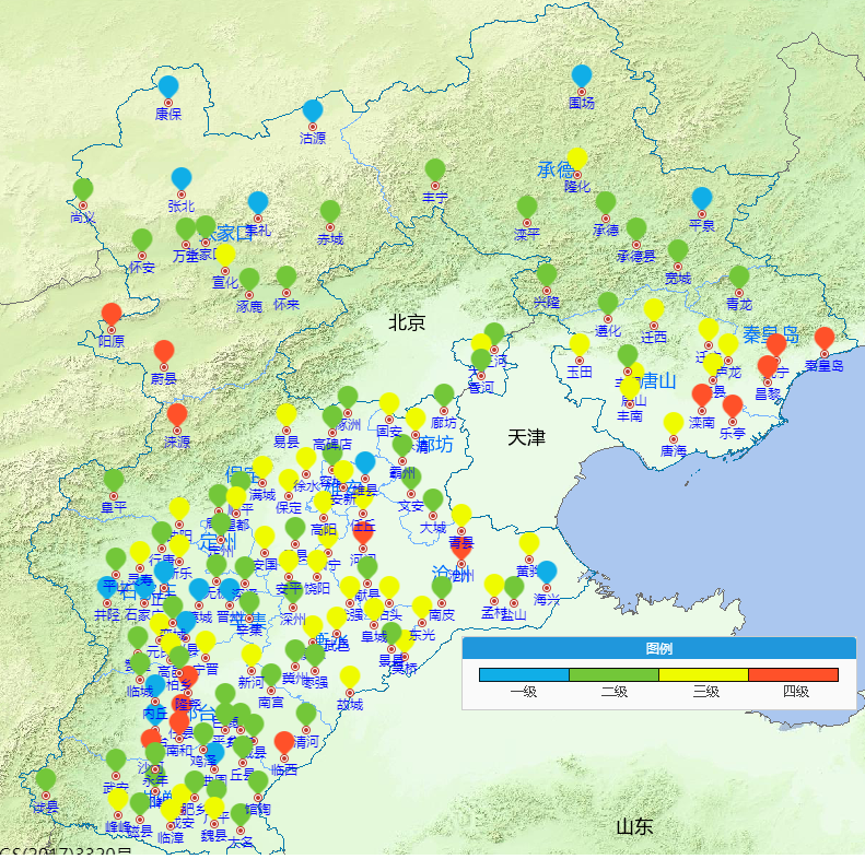 河北省气象台2023年12月20日11时继续发布大风蓝色预警信号:预计今天下午到夜间,张家口、承德、保定西北部有西北风4到6级,阵风7到8级,局地可达9级;渤海海域和沿海地区有北到西北风5到7级,阵风8级。请防范!