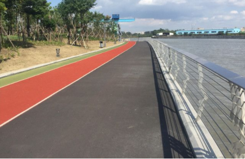 苏州河边的亲水道被设置成三种颜色,黑色的沥青道提供给骑行一族,红色和绿色的塑胶道,则是提供给散步和跑步的人群。