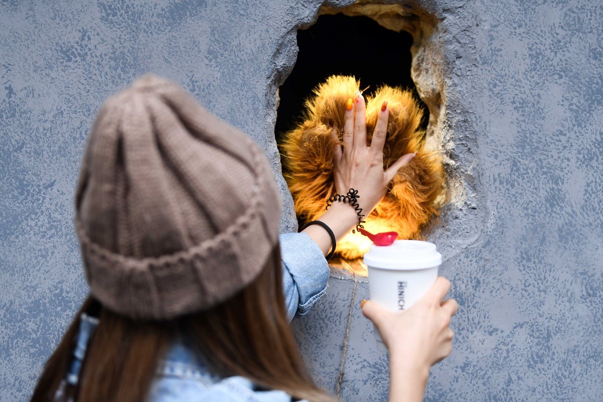 在“熊掌咖啡”店,咖啡做好后,会有一只熊爪从洞口把咖啡送出来,毛茸茸的大熊爪不仅仅是递咖啡,还会不时与顾客互动——击掌、摸头杀、送玫瑰……对于顾客们而言,与熊掌合影似乎比喝上咖啡更重要。