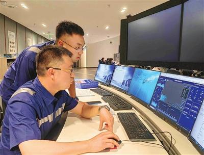 天津港工作人员使用“天津港智慧气象平台”查看天气情况。