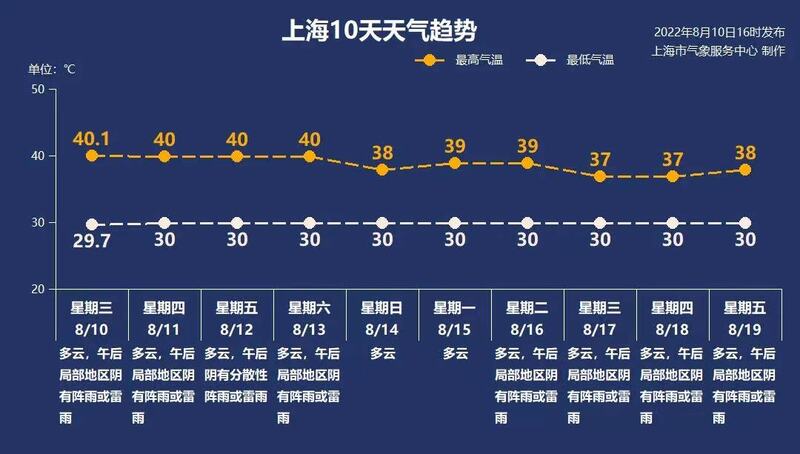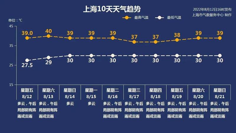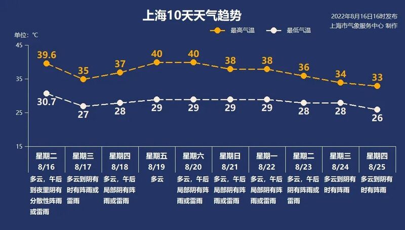 毫无悬念,上海今夏第43个高温日(35℃及以上)诞生了。据上海中心气象台预报,上海中心城区(徐家汇站)今日(16日)最高温定格39.6℃,并成为今年第27个酷暑日(37℃及以上)。