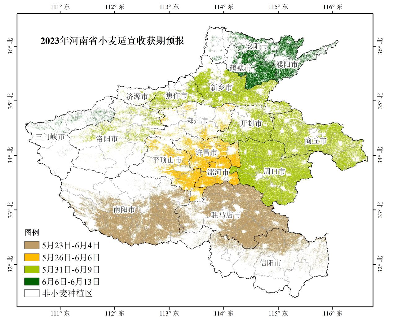 二、2023年小麦收获期及玉米、花生播种期预报