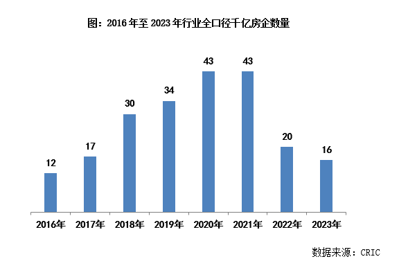 同时,2023年全口径规模超过千亿元的房企数量尽管有16家,但已降至近7年新低。