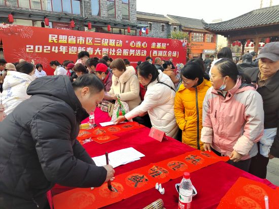 中新网江西新闻1月4日电(熊锦阳 邓鹏飞) 1月3日下午,民盟江西省委会、民盟南昌市委会、民盟西湖区总支三级联动“心连心,走基层”2024年迎新春大型社会服务活动(西湖区会场)在江西省南昌市西湖区万寿宫历史文化街区游客中心前广场举行。