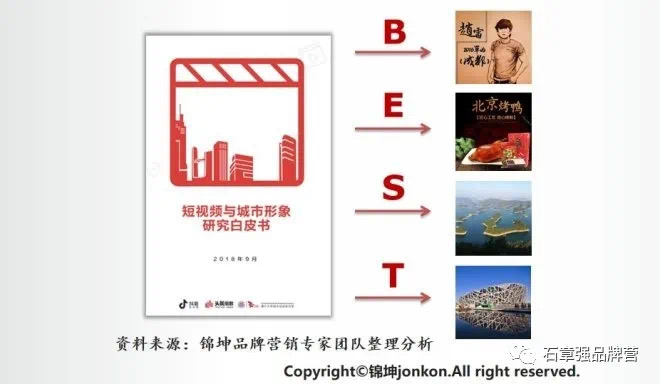 近年来,随着新媒体和社会化营销的兴起,越来越多的城市如重庆、西安、成都、长沙等纷纷化身为“网红”城市。“抖音”与“头条指数”“清华大学国家形象传播研究中心城市品牌研究室”研究后共同总结得出,BGM(城市音乐)、Eating(本地饮食)、Scenery(景观景色)、Technology(科技感的设施)这 4 类属性是“网红”城市更具辨识度的城市符号,同时也提出BEST法则适用于拍摄城市形象视频。BEST具有一定的代表性,但这些依然是具象的城市符号,更广泛传播的城市品牌符号是高度凝练的。