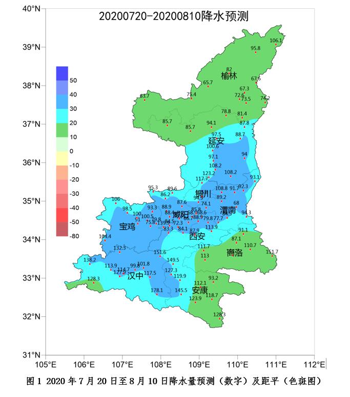据陕西省气象台预计:20-22日陕西省中南部部分地方有大到暴雨,局地大暴雨;7月下旬至8月上旬陕西省将进入多雨时段,累计降雨量:陕北北部、陕南东部偏多1~2成,陕北南部、关中、陕南西部偏多2~5成,局地偏多5成以上。
