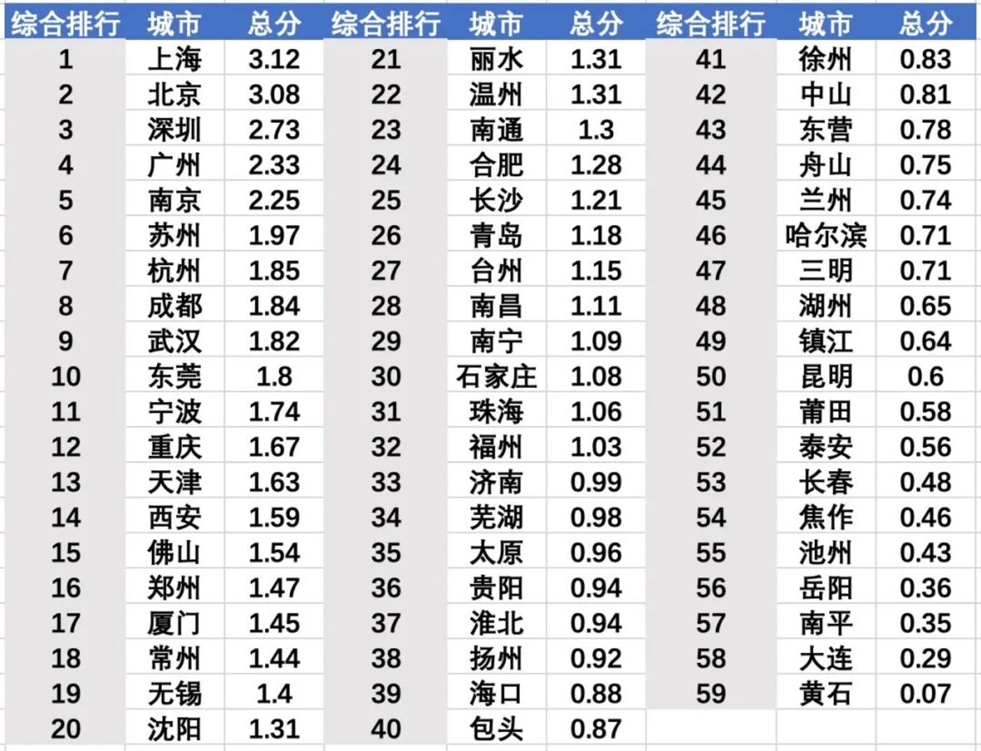 # 一线城市北上广深优势明显,二线城市中南京、杭州表现优异。