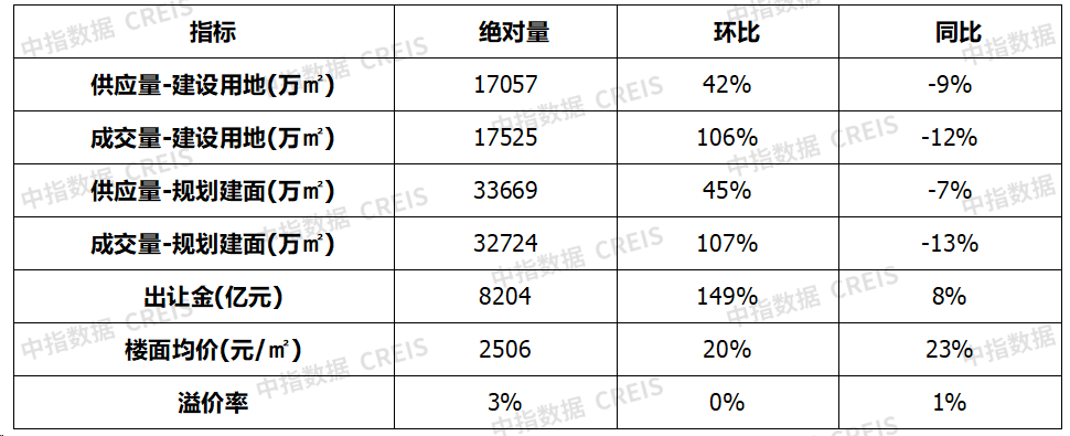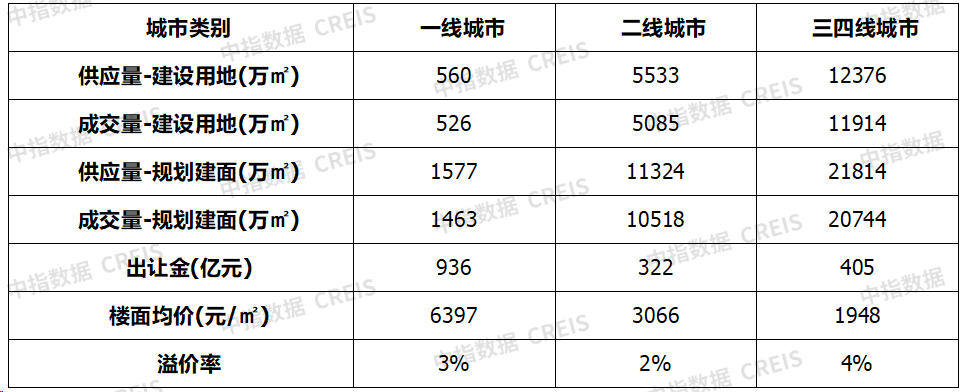 一线城市出让金总额同比增近八成,成交均价同比增近九成,成交量上降近一成;二线城市供求同比上升,成交量增近半成,出让金总额增近二成;三四线城市供应量同比走低,成交均价增逾一成,出让金总额降幅近一成。