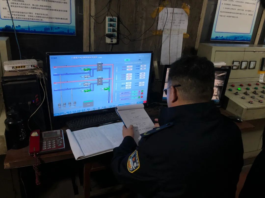4时许,检查组来到虎滩供暖锅炉房,技术人员正通过电脑远程监控系统监控换热站的运行情况。