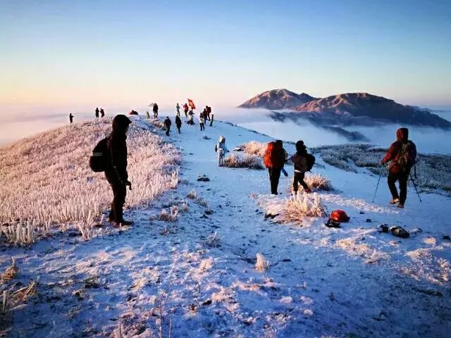 冬 · 梅香雪韵·冰雪仙境:大地飞雪,皑皑雪原,银装素裹,分外妖娆。棵棵树木变成了丛丛珊瑚,如披银叠叠,风吹树动,冰挂撞击,万籁有声,宛如一曲曲动听的音乐。云雾触手可及,缥缈似人间仙境,大有“万里云山齐到眼,九霄日月可摩肩”之意境,物我两忘。