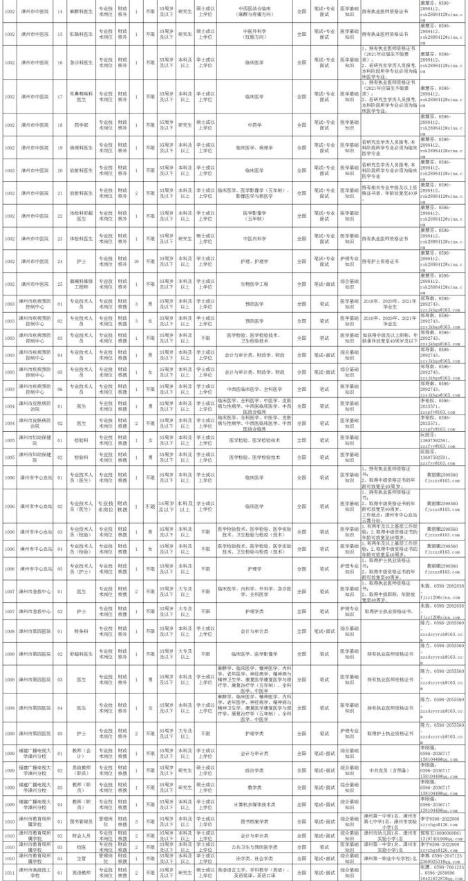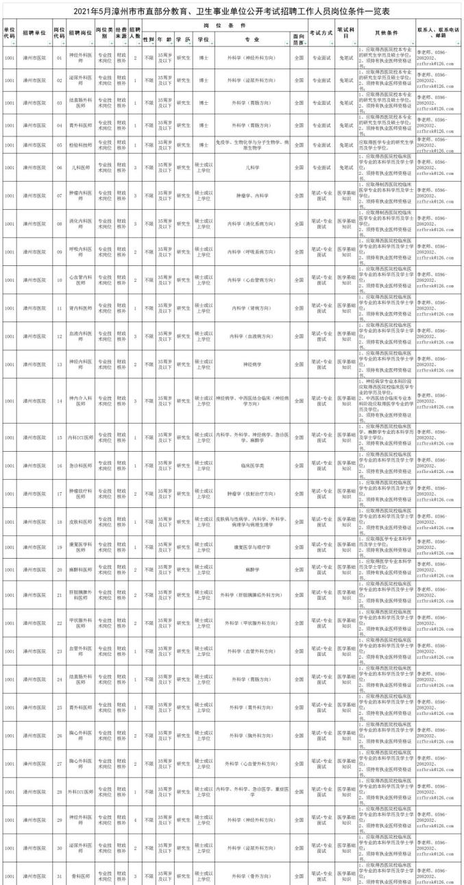 ●漳州市市直部分教育、卫生事业单位公开考试招聘事业单位工作人员225名