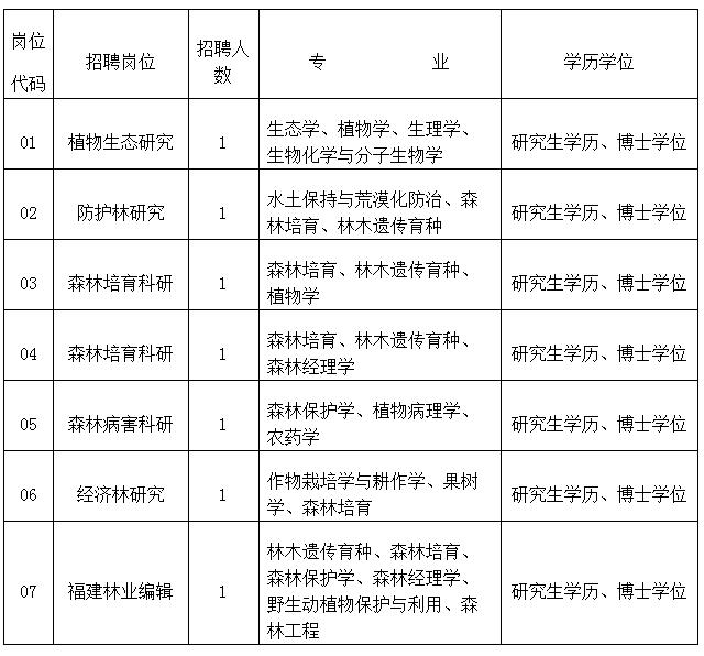 ●福建省林业科学研究院招聘博士学位专业技术人员7名