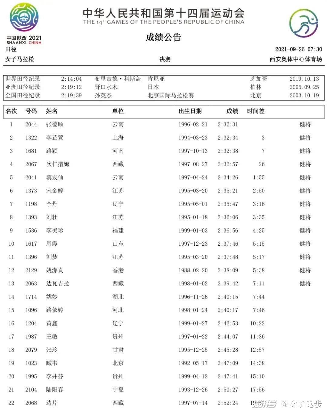 ▲2021全运会女子马拉松比赛,窦发仙以2:34:26收获第5名