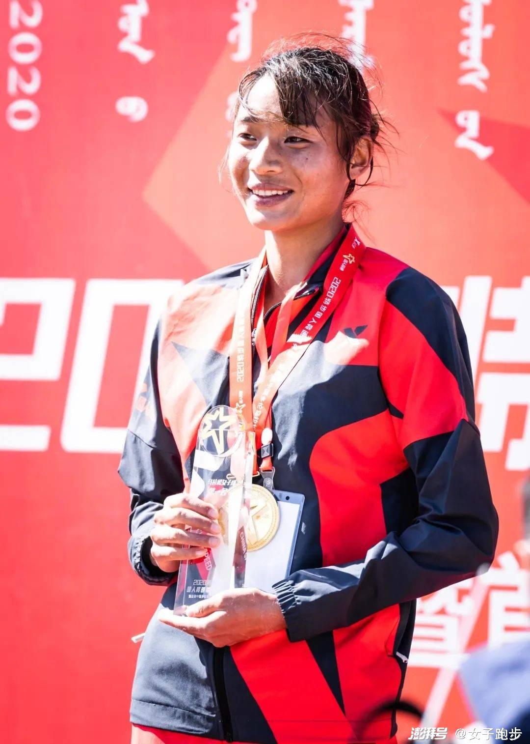 ▲2020特步国人竞速精英赛暨首届中国多伦马拉松赛,窦发仙收获第一枚个人全马金牌
