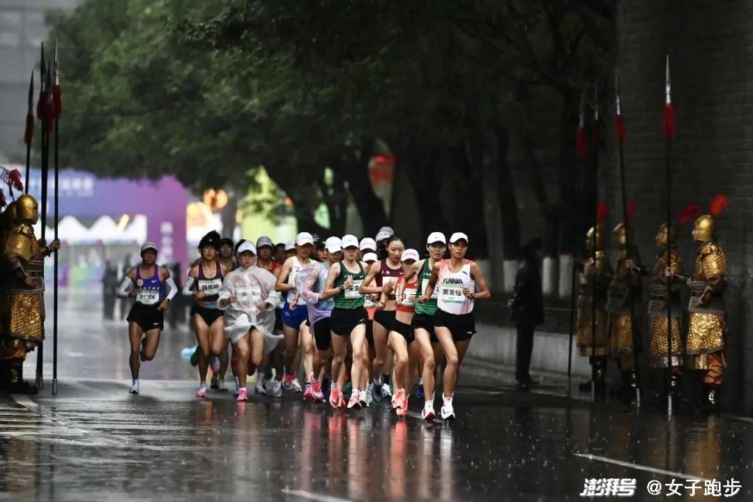 一阵秋雨一阵凉,那天的西安大雨滂沱,却难挡窦发仙火热的心和坚定的脚步。5公里时,窦发仙就开始加速,独自领跑,并逐渐与大部队拉开距离。就这样,她领跑了10公里,15公里,20公里,30公里。随着时间的推移,疲惫的窦发仙,身体晃动幅度变大,还出现了叉腰。35公里,她逐渐被追上,领先优势一步步缩小,最后无奈被超越。最终,窦发仙仅以第五名结束了自己的第一次全运会之旅。