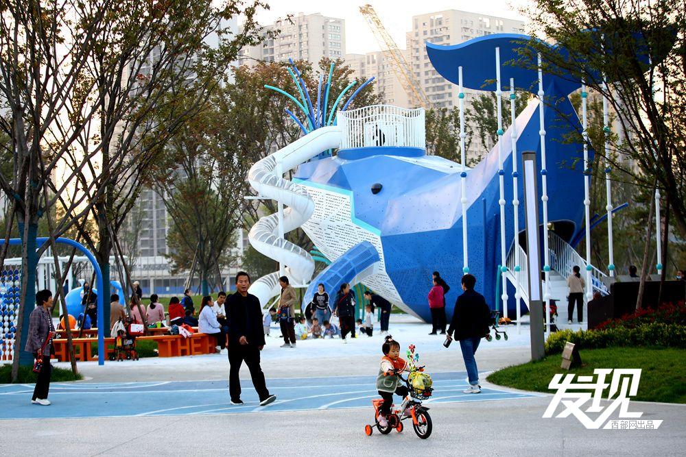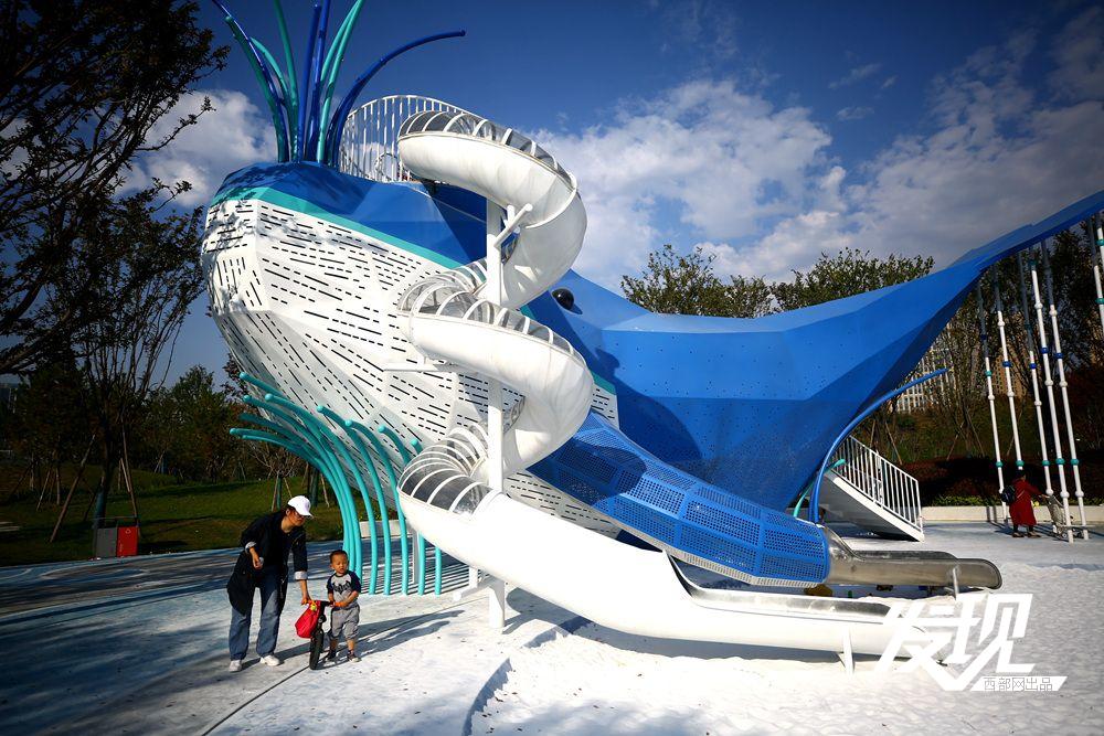 近日,曲江麓融公园在社交媒体上走红,蓝鲸造型的滑梯与白色沙滩格外引人注目,成为不少市民“遛娃”的好去处。目前,公园场地建设、基础设施及各景观带已经完成,即将正式开放。