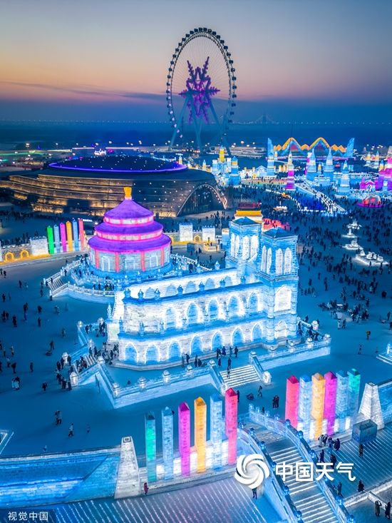 图为2023年12月27日,灯光璀璨的哈尔滨冰雪大世界。(来源视觉中国)