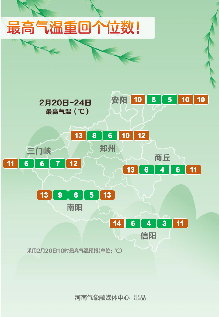 明天夜里,全省阴天,济源、焦作、三门峡、洛阳、郑州西部、平顶山西部、南阳西部部分县市有小雨或零星小雨,高海拔山区有雨夹雪或小雪。