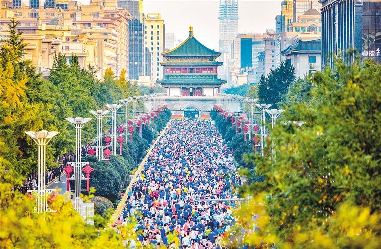 2023西安马拉松赛燃动全城(资料图片) 记者 王健 摄